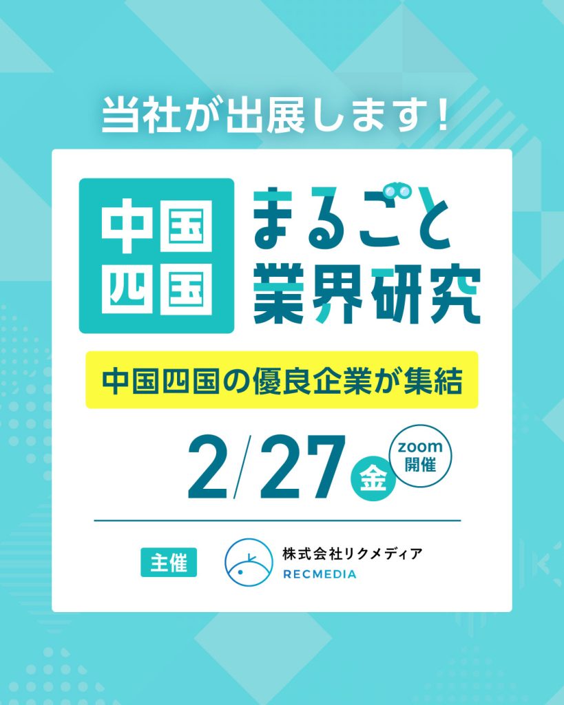 2026年2月27日(金)に「中国・四国まるごと企業研究」に出展します。
